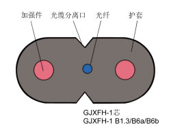 GJXFH非金屬加強(qiáng)件、低煙無鹵阻燃聚烯烴護(hù)套、蝶形引入光纜