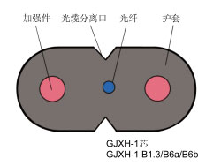GJXH金屬加強(qiáng)件、低煙無鹵阻燃聚烯烴護(hù)套、蝶形引入光纜
