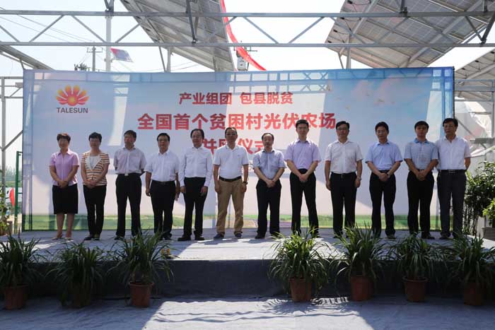 7月19日,全國首批12個貧困縣“貧困村光伏農場”包縣脫貧項目在安徽省靈璧縣舉行了并網儀式。該項目為靈璧縣73個貧困村每村建設0.5兆瓦光伏農場,讓每個貧困村光伏農場實現了“光伏+農業+就業”的疊加收益脫貧。在沒有各級政府投資情況下,一個貧困村扣除項目還貸付息后每年可實現脫貧凈收益20萬元以上。