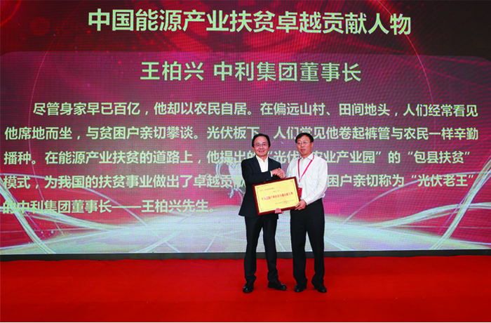 9月26日,“首屆中國能源產業扶貧高峰論壇”在京召開。全國光伏扶貧工作組副組長、中利集團董事長王柏興獲得“中國能源產業扶貧卓越貢獻人物”獎獨份殊榮,中利集團創新推出的“貧困村光伏農場”精準脫貧模式也榮獲了“中國能源產業扶貧模式創新”獎。本次論壇由中國改革報《能源發展》周刊、北京國發智慧能源技術研究院主辦,綠能幫文化傳媒(北京)有限公司承辦。