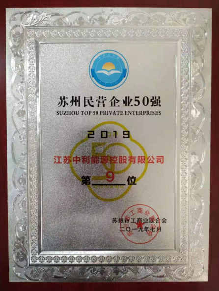 近日,蘇州市工商業(yè)聯(lián)合會按2018年度營業(yè)收入指標(biāo)排定“2019蘇州民營企業(yè)50強”榜單,中利集團榮登蘇州民營企業(yè)50強第9名。