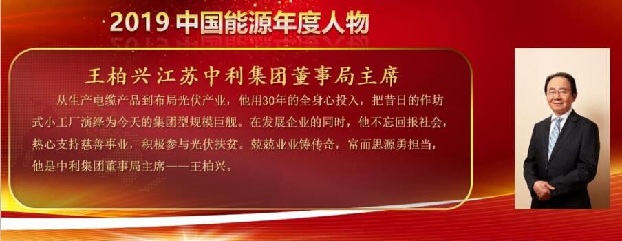 會議同期對2019年中國能源領域表現(xiàn)突出的先進企業(yè)、先進個人、創(chuàng)新技術和優(yōu)質(zhì)產(chǎn)品進行表彰。憑借在推動能源發(fā)展轉型和光伏扶貧事業(yè)中做出卓越貢獻,中利集團董事局主席王柏興榮獲“2019中國能源年度人物獎”。主辦方給出的頒獎詞:“從生產(chǎn)電纜產(chǎn)品到布局光伏產(chǎn)業(yè),他用30年的全身心投入,把昔日的作坊式小工廠,演繹為今天的集團型規(guī)模巨艦。在發(fā)展企業(yè)的同時,他不忘回報社會,熱心支持慈善事業(yè),積極參與產(chǎn)業(yè)扶貧?!?/span>
