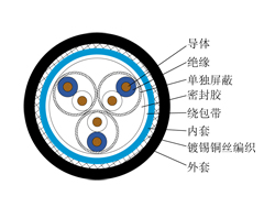 電纜具有阻燃、低煙、無(wú)鹵、低毒、耐油、防水、耐6.75MPa水壓以及優(yōu)良的電氣性能等特性,能滿足艦船有水密要求及復(fù)雜電磁環(huán)境中信號(hào)傳輸?shù)囊蟆?