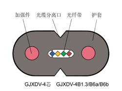 | GJXFDV | 非金屬加強(qiáng)件、聚氯乙烯護(hù)套、蝶形引入光纖帶光纜 | |